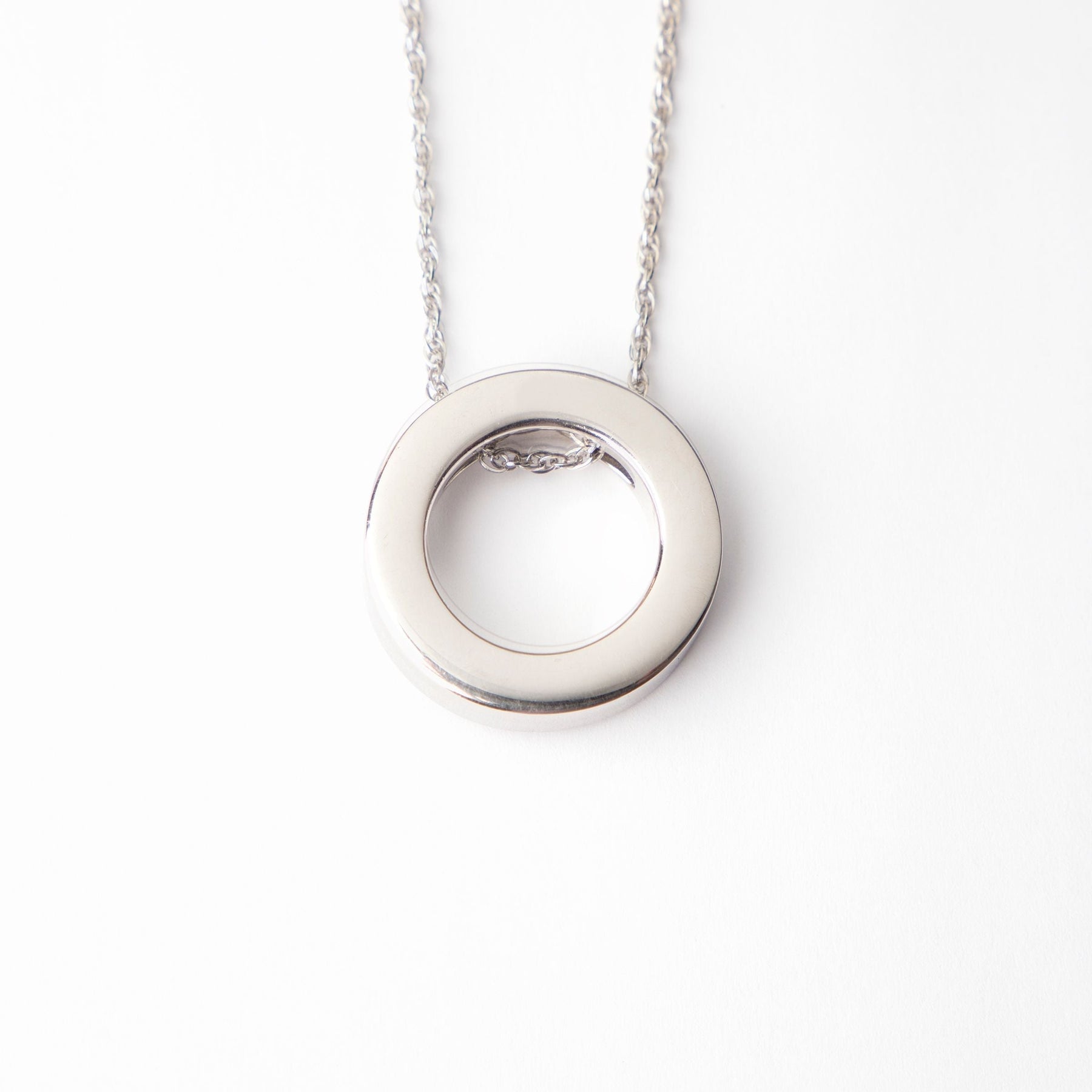 The Circle of Life Cremation Pendant is made from 925 sterling silver and is handcrafted with care by our artisan jewelers. This circular pendant is great for both men and women and can be filled with a small portion of your loved one's ashes. This elegant cremation piece comes with an 18" sterling silver rope chain and can be paired with beautiful interchangeable charms that express your loved one.