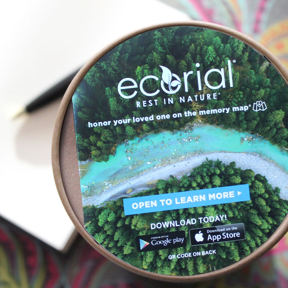 • ECORIAL APP. Included with our urns is access to our proprietary Ecorial app, which lets you easily mark the spot of your loved one’s memorial and record the date, time and exact GPS coordinates. You can also upload video and photos and create an online memorial.